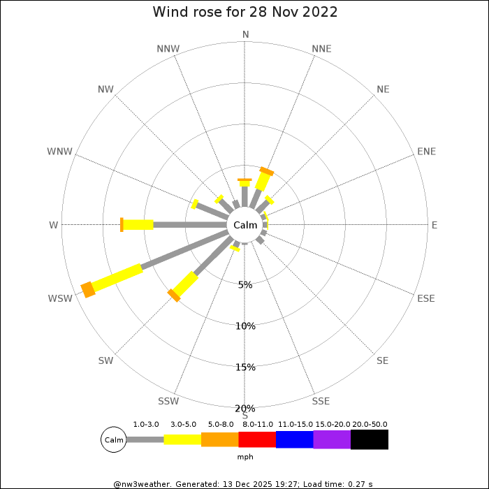 | Max 10m Wind Speed | 5.7 mph | 22:32 | 11.4 mph | 15.3 mph, 2018 | 4.2 mph, 2013 |